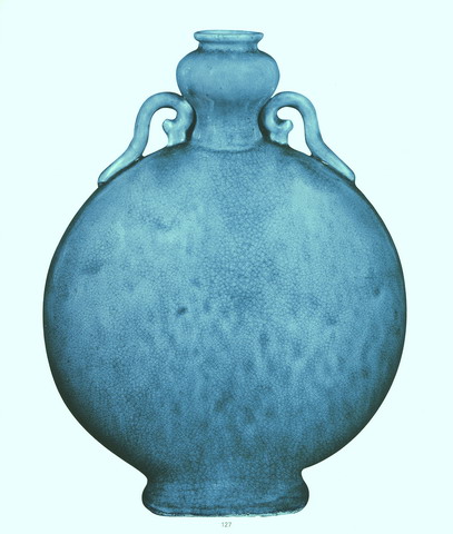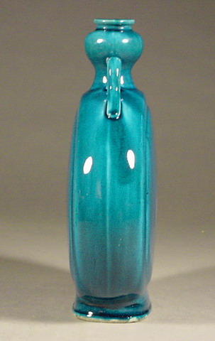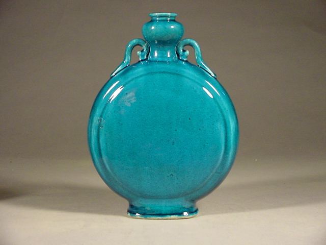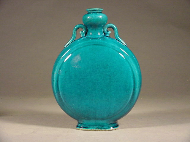 crackled translucent turquoise glaze which darkens in the recesses of the