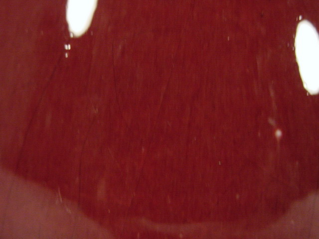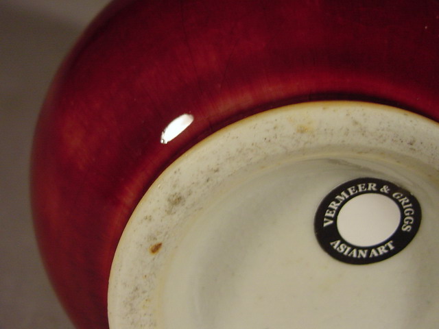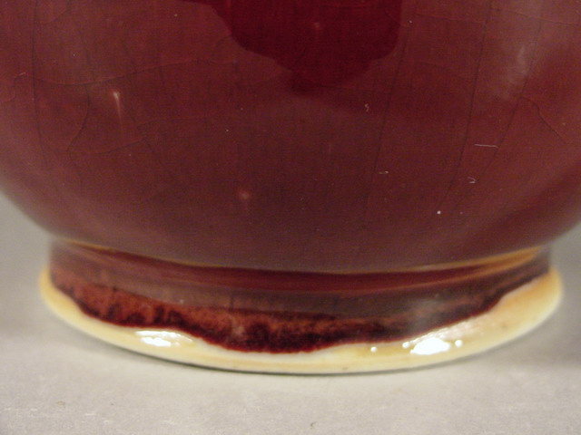 foot rim showing a burned line in the biscuit. The glaze exhibits a hard to see