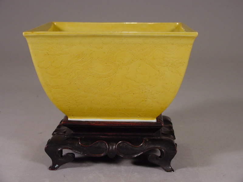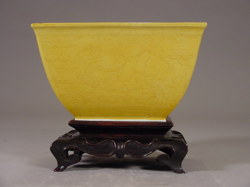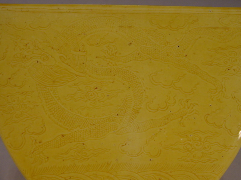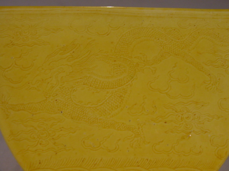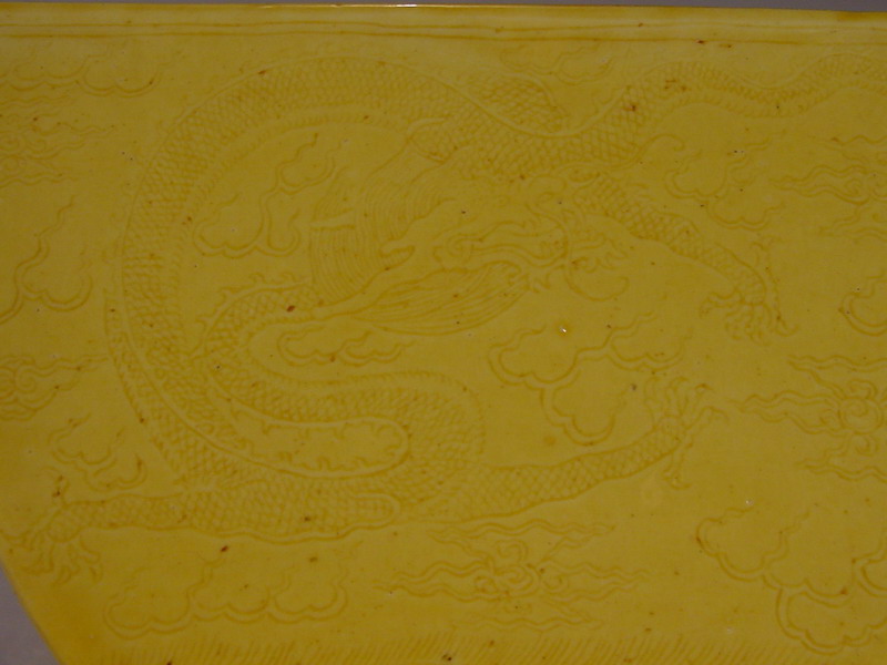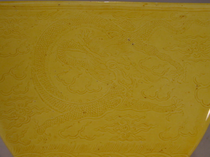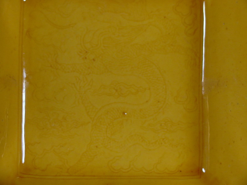 brilliant glossy egg yolk yellow glaze (huang you). Incised in