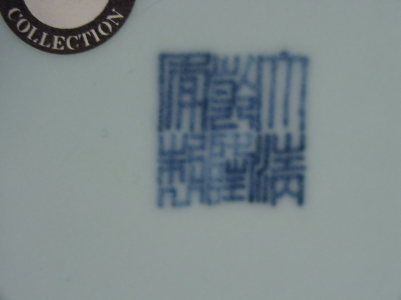 waves. Centered on the white glazed base is the zhuanshu mark of the