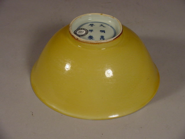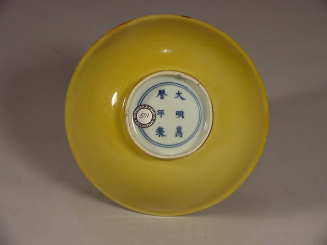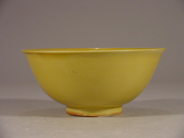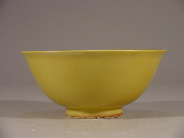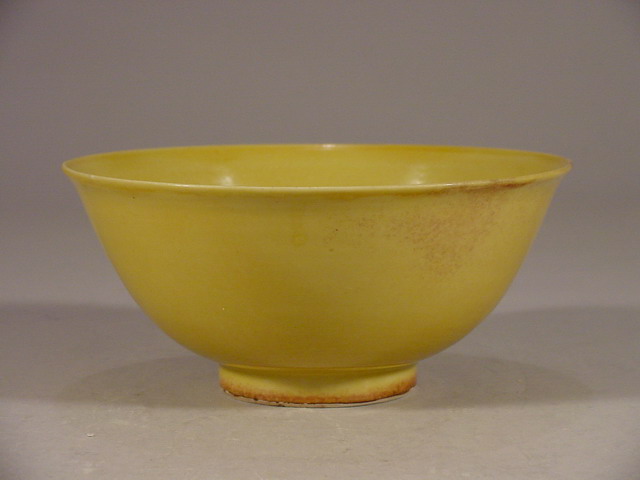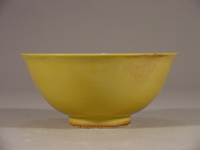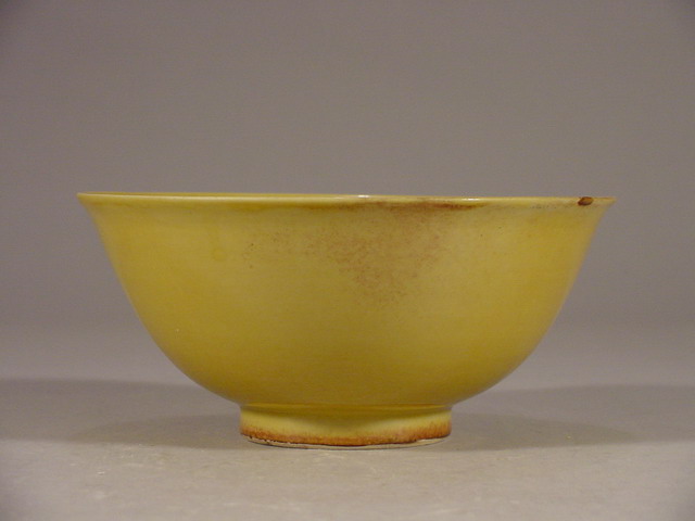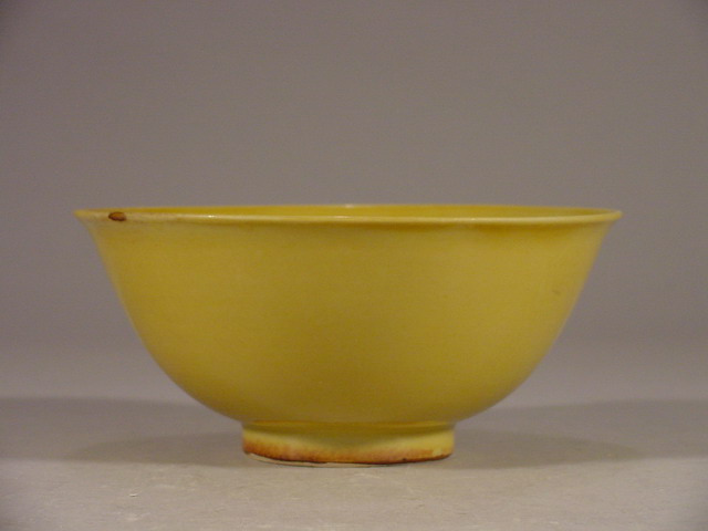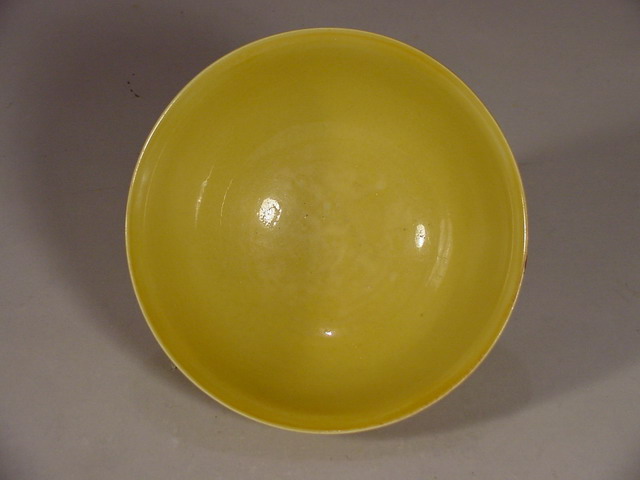 exterior applied with a translucent pale yellow glaze pooling at the foot to