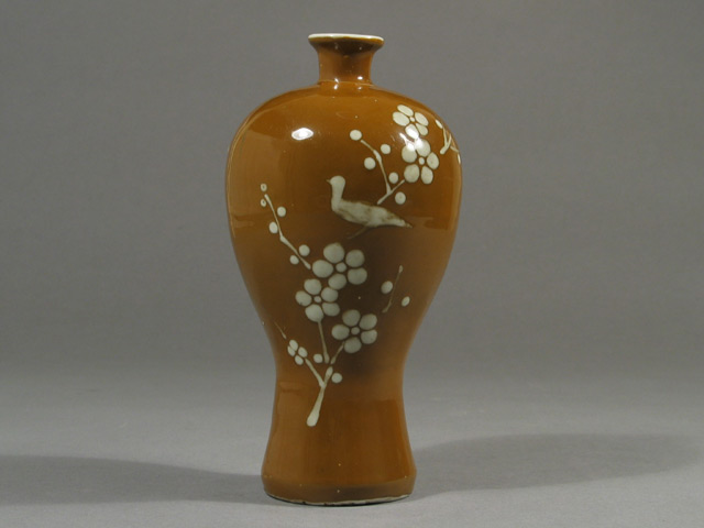 萬曆 Wanli Toffee Colored Meiping with White Slip Decoration