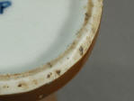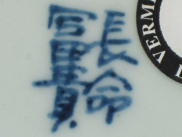 prunus branch is applied. The interior and the recessed base are glazed white. On the base is a four character kaishu mark in underglaze blue
