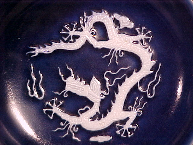 cartouche beneath the rim. A further biscuit dragon is centered in the