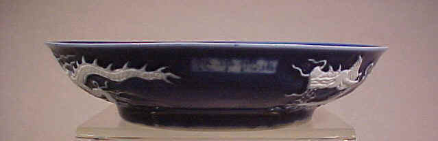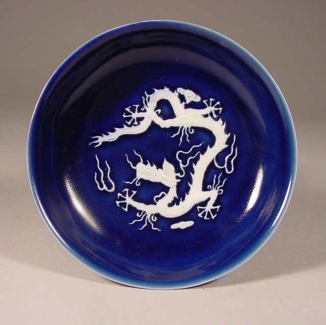 正德 Zhengde Blue Saucer with Relief Biscuit Decoration