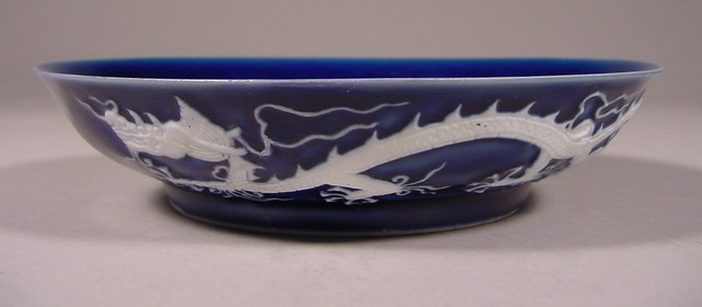A very rare saucer dish covered in a deep cobalt blue glaze