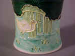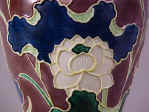 mouth opening with applied, raised outlines in mallow yellow simulating cloisonné