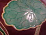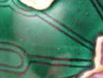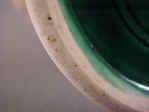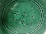 glazed a brilliant green and on the base beneath the translucent glaze within