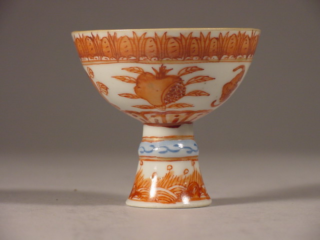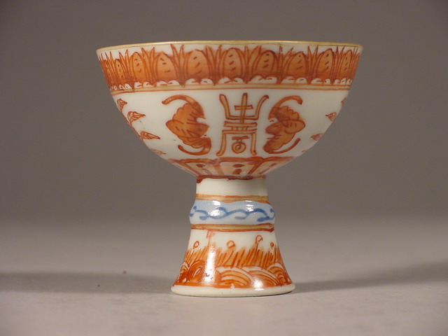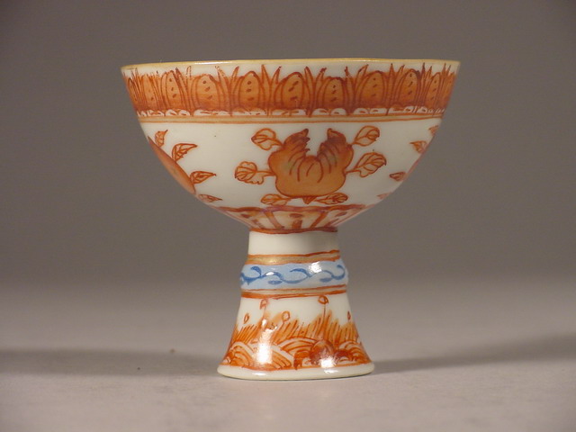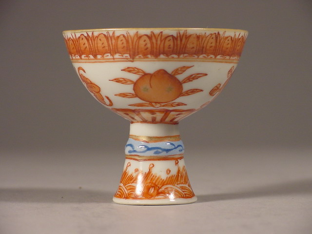 Small 光緒 Guangxu Iron Red Enameled Sanduo Stem Cup