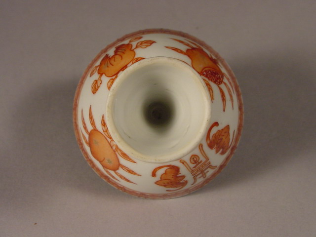 decorated in iron red enamel (tie hong or fan hong) with a shou