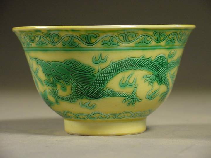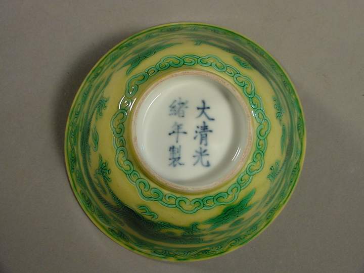 光緒 Guangxu Small Green and Yellow Dragon Bowl