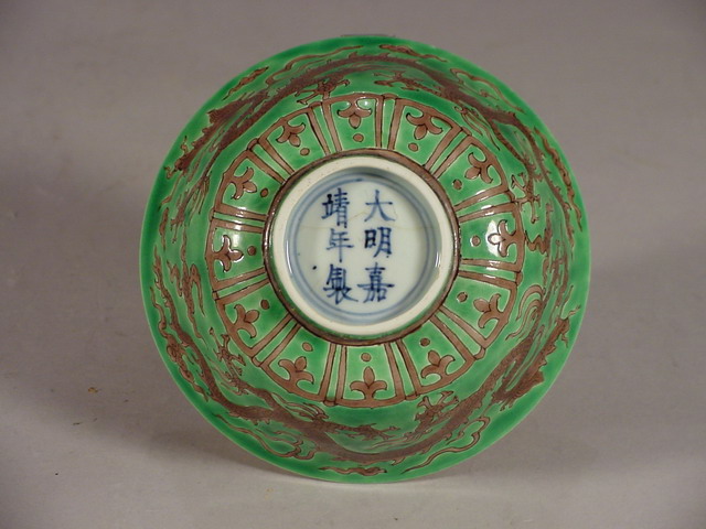 嘉靖帝 Jiajing emperor, Houcong. The foot rim is unglazed and there are glaze fractures in the