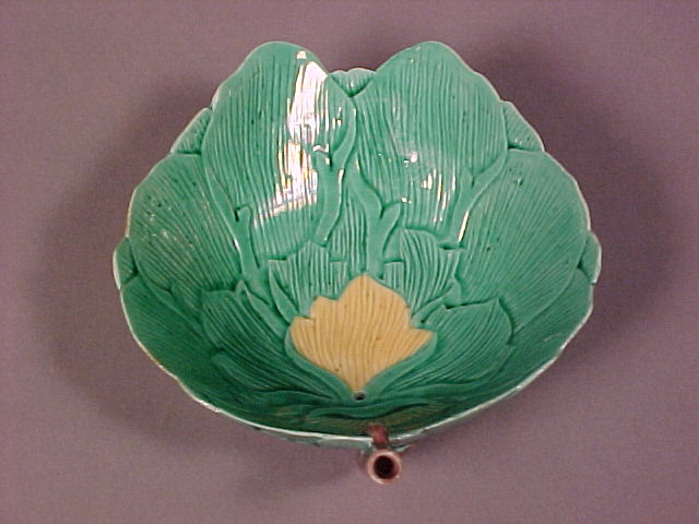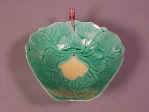 also called a nose cup, covered in pale translucent green glaze with highlights of yellow and