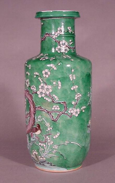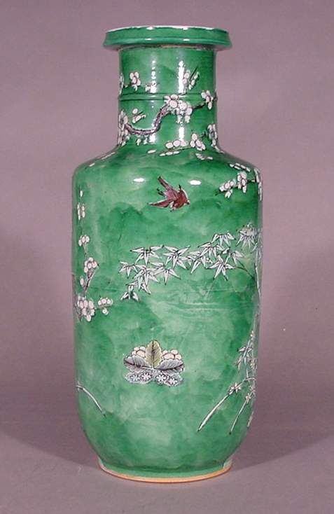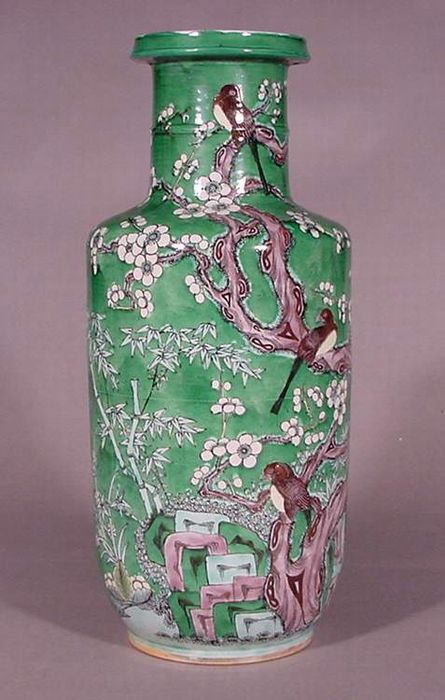 Enlargements of 康熙 Kangxi Famille Verte Susancai Rouleau Vase