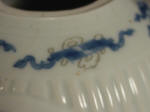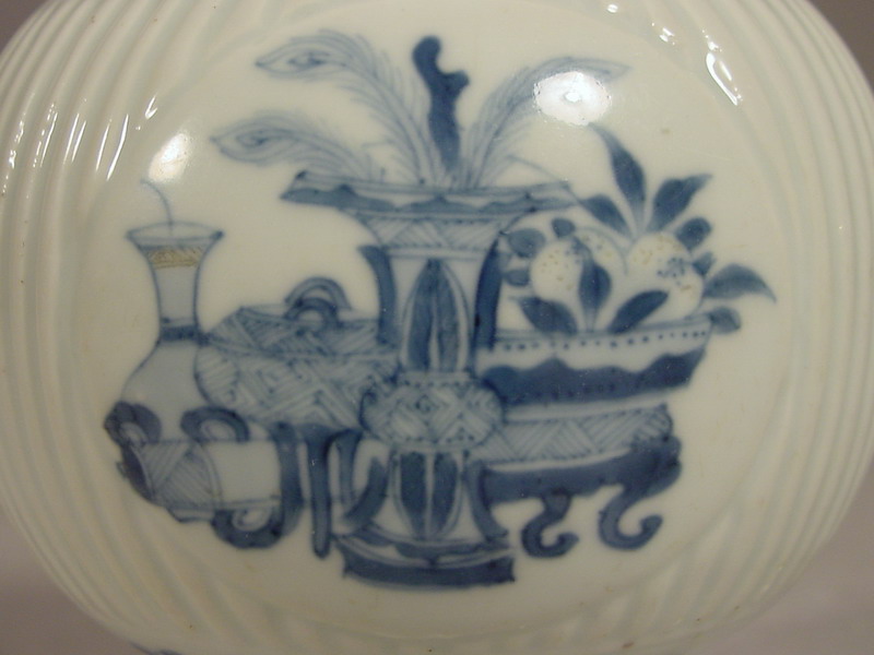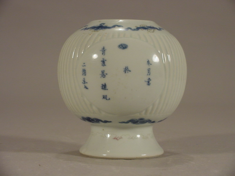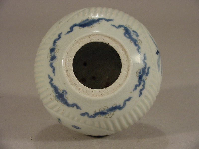 An unusual Kangxi underglaze blue and red jar, the ribbed globular