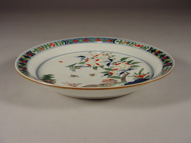 plate with flattened rim, decorated with a design of a monkey under a fruiting
