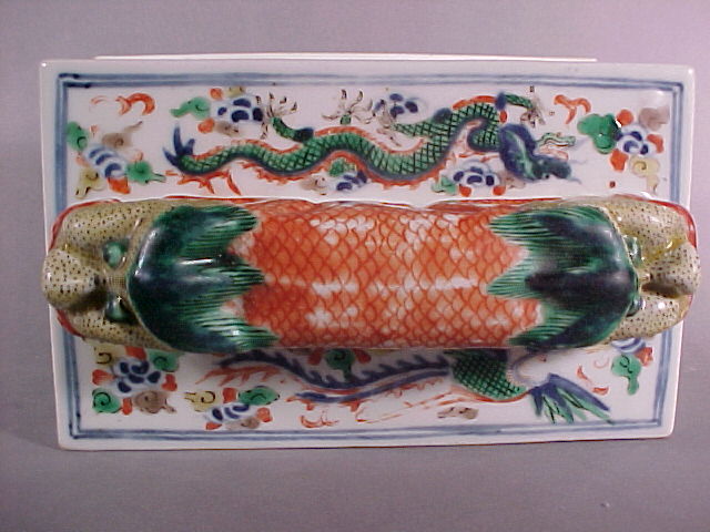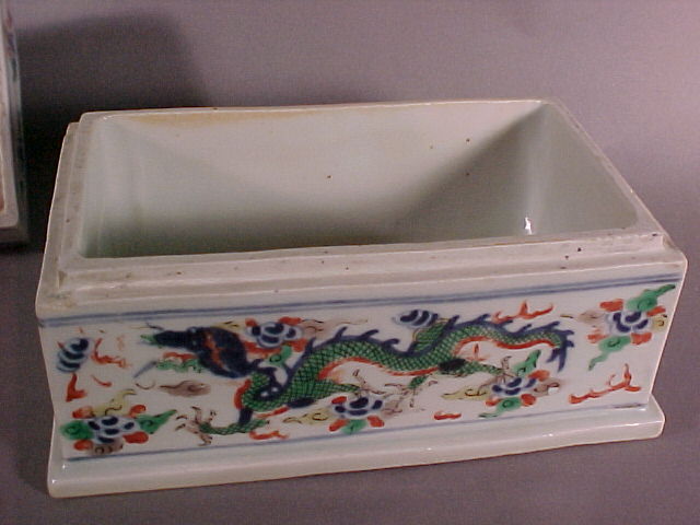 Enlargements of Transitional Style Wucai Lion Handle Box